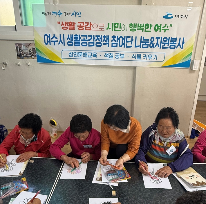 여수시에서는 주부, 회사원, 학생, 교육 공무원 등 8명의 단원을 위촉했으며, 정기 나눔 봉사활동으로 매월 마지막 주 수요일마다 성인문해교육 등 다양한 재능기부를 펼치고 있다.