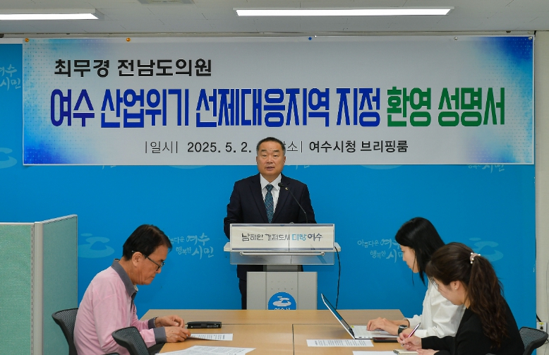 최무경 의원은 성명에서 “이번 지정은 글로벌 석유화학산업의 공급과잉, 탄소중립 전환, 산업 패러다임 변화로 고통받고 있는 여수 지역경제에 대한 정부의 선제적 대응이자 정책적 의지를 보여준 결정이다”고 밝혔다.