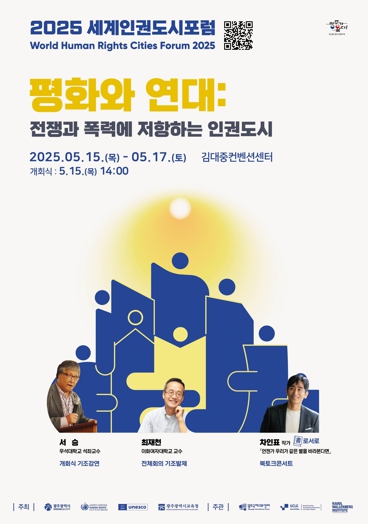 박용수 민주인권평화국장은 “더 많은 시민이 세계인권도시포럼에 참여해 평화의 가치를 함께 체험하고 공감하는 시간이 되길 바란다”고 말했다.