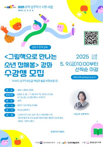 수강생 모집은 5월 9일 오전 10시부터 광양시립도서관 누리집을 통해 선착순으로 접수한다.