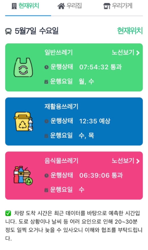 이 앱은 청소차 도착 정보 외에도 자원순환가게 위치와 운영시간, 적립 포인트 사용 방법 등을 함께 제공하며, 페트병‧캔‧종이팩‧폐건전지‧아이스팩 등을 모아 자원순환가게에 가져가면 포인트로 적립해 현금처럼 사용할 수 있다.