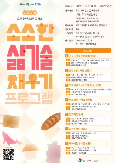 임택 동구청장은 “이번 프로그램은 청년들이 바쁜 일상 속에서도 자신만의 시간을 갖고, 실용적인 기술을 익히며 자기 개발과 사회 참여의 기회를 얻을 수 있도록 기획됐다”면서 “앞으로도 청년들의 삶에 활력을 불어넣을 수 있는 다양한 프로그램을 지속적으로 발굴해 나가겠다”고 말했다.