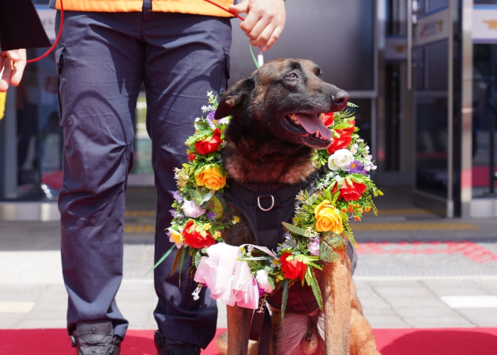 장고의 빈 자리에는 새 친구 딩크(3ㆍ벨지움마리노이즈)가 도민의 안전과 생명을 위해 각종 재난현장에서 활약할 예정이다.
