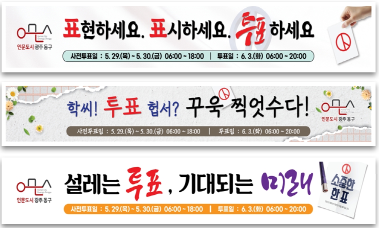 동구는 시민들의 적극적인 선거 참여를 위해 이달 12일부터 6월 3일까지를 선거 홍보 기간으로 지정하고, 지역 자생단체와 유관기관, 동구 SNS 서포터즈, 마을활동가 등과 함께 투표 참여 홍보활동을 온·오프라인에서 펼칠 계획이다.