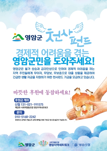 김선미 영암군 인구청년과장은 “천사펀드는 영암군민이 이웃을 돕는 연대의 상징이다. 경제적 위기에 놓인 분들에게 따뜻한 희망을 전할 수 있도록 더 촘촘한 사회적 금융으로 확장해 나가겠다”고 전했다.