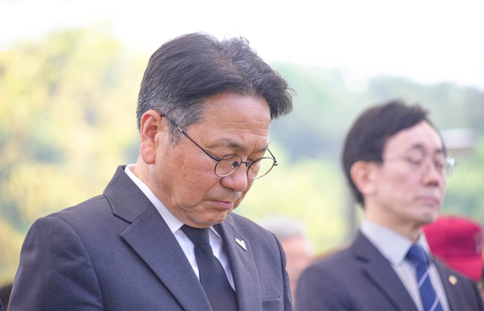 강기정 시장은 동학농민혁명 희생자에 추모 헌화하고, 무장포고문 낭독을 함께하며 동학의 가치를 되새겼다.