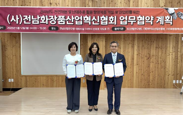 오득실 전남산림연구원장은 “이번 협약은 전남 산림자원을 활용한 향장소재의 기능성 검증과 산업적 활용 가능성을 넓히는 전환점이 될 것”이라며 “기능성 향장제품 개발과 산림바이오소재의 고부가가치화를 통해 국민 건강과 지역산업 발전에 기여하겠다”고 밝혔다.