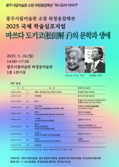 이번 학술 심포지엄은 광주시립미술관과 일본역사교육자협의회, 광주전남작가회의, 문병란시인기념사업회가 공동 주최하고 5·18기념재단, 한일민족문제학회, 역사교사모임이 협력했다.
