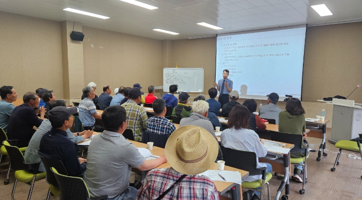 이날 교육은 단감 병해충 방제 및 하절기 과원관리 방법을 주제로 오가닉식물연구소 김두용 박사가 교육을 진행한 후 단감 공선출하회 구성의 필요성 및 향후 계획에 대한 농업인의 의견을 수렴하는 순서로 진행돼었다.
