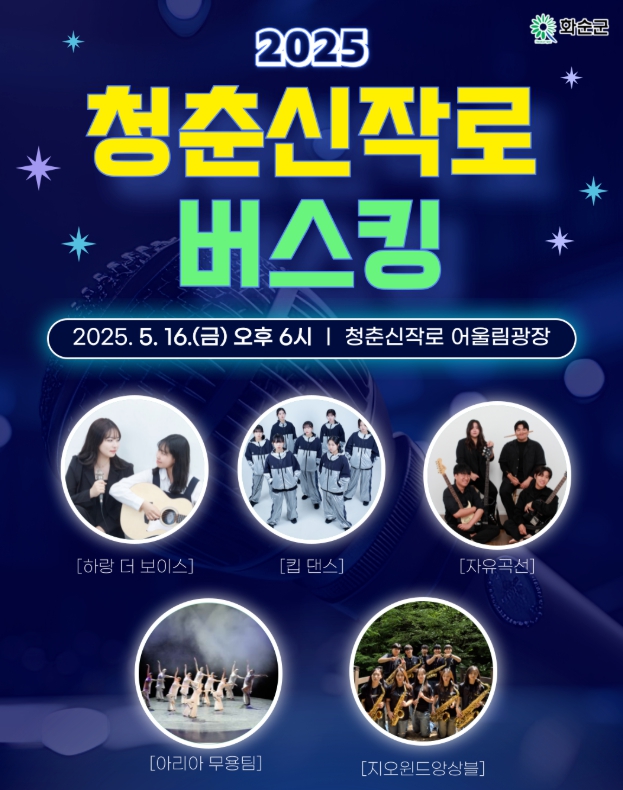 이날 무대에는 총 5팀이 참여해 각기 다른 매력의 공연을 선보일 예정이다. ▲관객과 소통하는 보컬 공연의 ‘하랑 더 보이스’ ▲에너지 넘치는 스트릿 ▲힙합 댄스 공연의 ‘킵 댄스 스튜디오’ ▲감미로운 색소폰 3중주로 분위기를 더할 ‘지오윈드 앙상블’ ▲한국 무용 공연을 선보일 ‘아리아 무용학원’ ▲생동감 넘치는 밴드 음악의 ‘자유곡선’이 무대를 꾸민다.