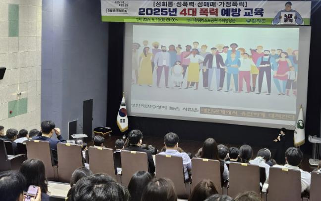 함평군은 “공직자 250여 명이 참석한 가운데 지난 13일 함평엑스포공원 주제영상관에서 성희롱·성폭력·성매매·가정폭력 등 4대 폭력 예방 교육이 진행됐다”고 14일 밝혔다.