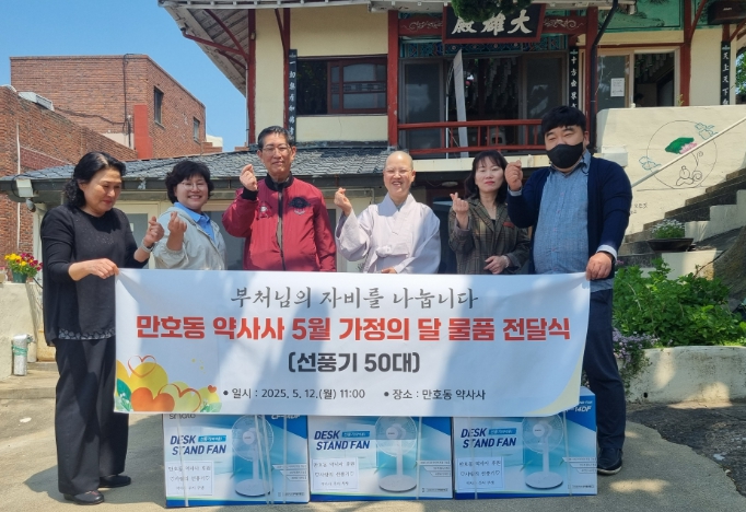 이날 행사에는 무생 스님과 약사사 신도들이 참석해, 저소득 가구의 여름철 건강관리를 위해 선풍기 50대(175만 원 상당)를 만호동 행정복지센터에 전달했다.