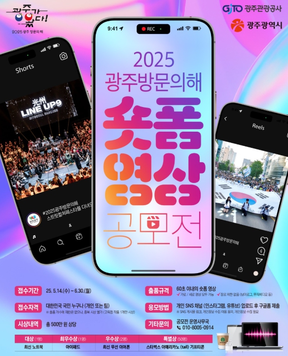 이번 공모전은 ‘2025 광주방문의 해’, ‘5·18민주화운동’ 등을 주제로 60초 이내의 짧고 강렬한 영상 콘텐츠를 제작, 광주의 매력을 효과적으로 알리기 위해 마련됐다.