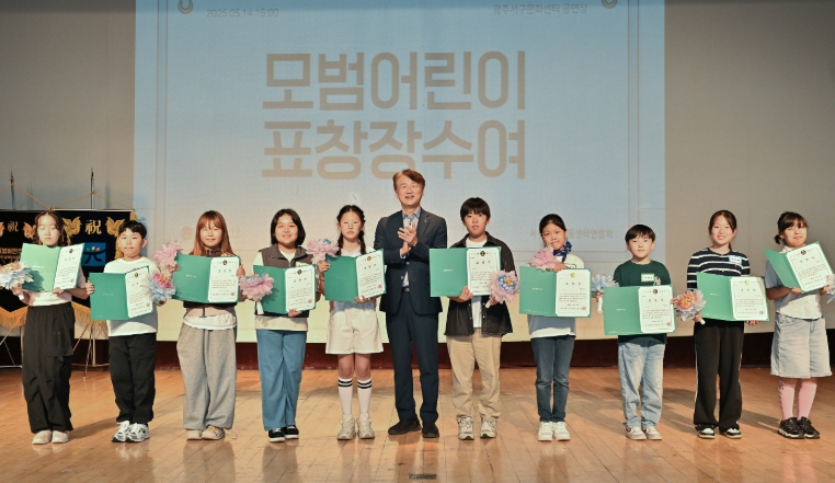 기념식에는 모범 어린이 10명에게 표창장이 수여됐으며 ▲가정 내 소통과 협력 등으로 화목한 가정 문화를 주도한 문수지(서광초5), 나성민(주월초3) 학생이 ‘가족상’을 ▲배려심 깊은 태도로 따뜻한 교우문화 조성에 앞장선 조하영(금부초5), 고혜성(금당초5), 양승우(염주초6) 학생이 ‘친절상’을 받았다.
