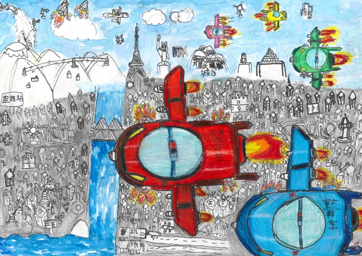 이 작품은 최첨단 기술을 접목한 경찰차로 치안을 신속히 해결하는 미래를 그려, 기술 발전의 긍정적 변화를 창의적으로 표현했다.