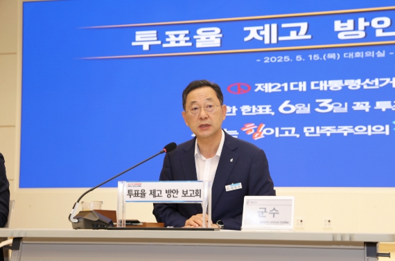 군은 지난 15일 명현관 군수 주재로 대통령 선거 투표율 제고 방안 보고회를 개최하고, 읍면별 선거 준비 사항을 점검하는 한편 군민들의 투표율 제고를 위해 적극적인 홍보를 펼쳐 나가기로 했다.