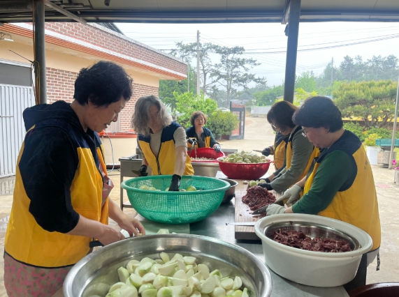 지역사회보장협의체는 이른 아침부터 장조림과 양파김치, 잔멸치볶음 등 밑반찬 3종을 직접 만들며 나눔의 의미를 더했다.