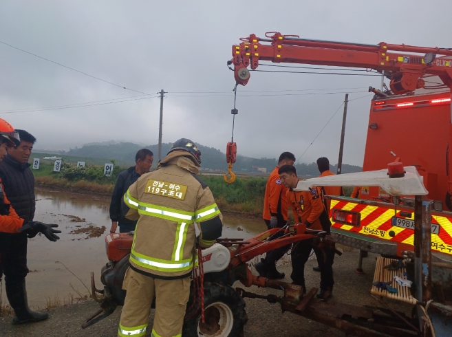 여수소방서(구조대장 이치원)는“오늘 같이 비가오는 날에는 도로가 미끄러우므로 가급적 경운기 운전을 자제하”고 “평소에 작업 전·후에는 반드시 농기계를 점검 및 농기계에 끼어 들어갈 수 있는 헐렁하거나 긴 소매 옷은 피하며, 미끄럼 방지처리가 된 안전화를 착용할 것”을 당부했다.