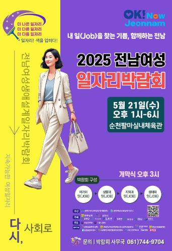 ‘내 일(Job)을 찾는 기쁨, 함께하는 전남’이라는 슬로건 아래 진행되는 이번 박람회는 변화하는 일자리 패러다임에 맞춰 여성의 생애주기별 맞춤형 일자리 정보를 제공하고, 재취업과 창업 등 다양한 경로를 통해 여성의 사회참여 기회를 확대하기 위해 마련됐다.