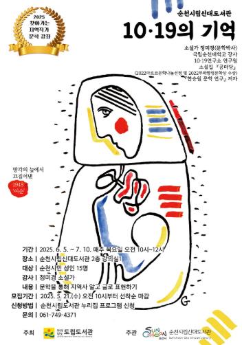 참여 신청은 오는 21일 수요일 오전 10시부터 선착순 접수로 진행되며 순천시립도서관 누리집으로 온라인 신청이 가능하다.