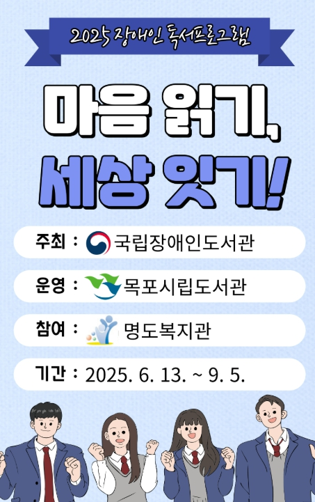 이번 프로그램은 ‘마음 읽기, 세상 잇기’를 주제로, 명도복지관 소속 발달장애 청소년을 대상으로 작가와의 만남, 체험활동, 관심 분야 탐색 등 다양한 독서활동으로 구성되며 총 12주간 진행될 예정이다.