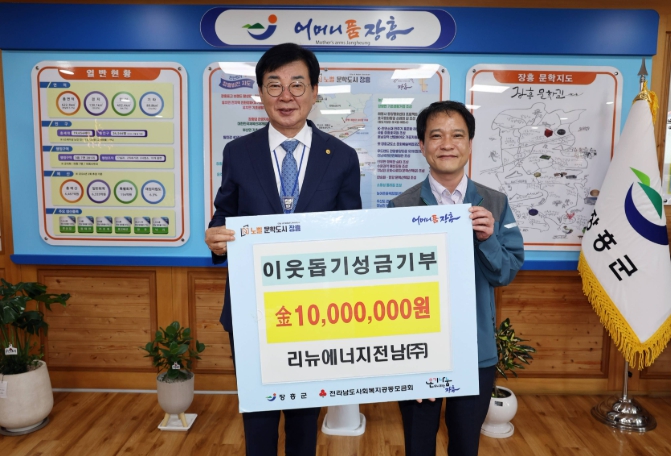 장흥군 관계자는 “지역을 위한 나눔에 앞장서 준 리뉴에너지전남(주)에 깊이 감사드린다”며, “기탁해 주신 성금은 도움이 절실한 이웃들에게 투명하고 소중하게 전달하겠다”고 밝혔다.