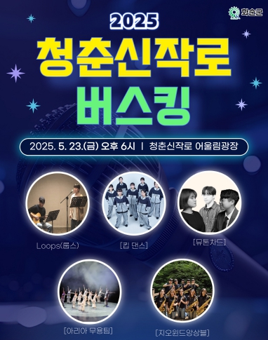 청춘신작로 버스킹은 어울림광장에서 정기적으로 열리는 거리공연으로 5월부터 10월까지 매주 금요일 오후 6시, 지역 주민과 관람객에게 다양한 문화적 즐거움을 선사할 예정이다. 단, 폭염과 태풍 등 기상 여건을 고려해 8월 한 달간은 충전 기간으로 공연을 잠시 중단하며, 그 외 기간에는 다양한 프로그램으로 운영할 예정이다.