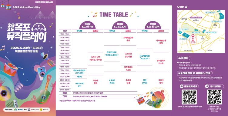 이번 축제는 목포의 정체성과 감성을 음악으로 풀어낸 다채로운 콘텐츠로 구성됐으며, 음악공연, 전시·체험, 경연대회, 시민참여형 프로그램 등을 통해 ‘음악 도시 목포’의 매력을 전국에 널리 알릴 예정이다.