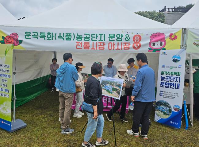 축제장 중앙에 있는 홍보 부스에서는 전국 각지에서 방문한 관광객을 대상으로 기본 농공단지 현황(총 25필지, 분양가 208,653원/㎡)과 분양 내용에 대해 홍보하고 있고 아울러 부지 현황판을 현장에 배치해 많은 관광객의 이목을 집중시키고 있다.