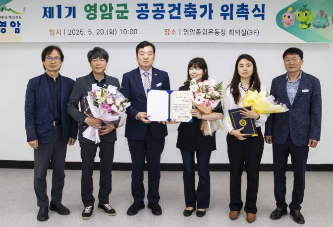 공공건축의 품격을 높이고, 영암군민 삶의 질 향상을 위한 이번 위촉식에서 김수현 라스종합건축사사무소장, 권현아 목포대 건축학과 교수, 이충미 진짜노리건축사사무소장이 공공건축가 위촉장을 받았다.