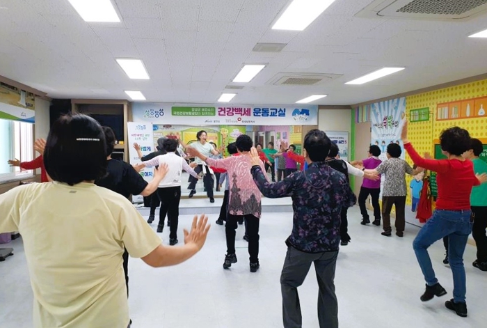 전문 운동강사와 함께하는 △스트레칭 △소도구 활용 근력 운동 △라인댄스 등 다양한 신체활동 프로그램으로 구성되어 참여 주민들의 호응이 높다.