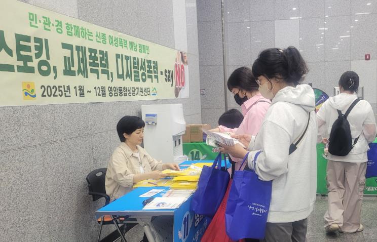 ‘2025 구인구직 만남의 날’ 행사장에서 진행된 이날 캠페인은, 디지털 기술 발달과 노동환경 변화 속에서 발생하는 디지털 성범죄, 스토킹, 데이트폭력, 직장내 괴롭힘 등 신종 여성폭력의 심각성을 알리고, 피해를 예방하기 위해 마련됐다.
