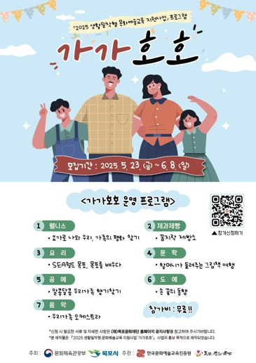 목포문화재단 관계자는 “이번 가가호호 프로그램이 가족 간 소통을 활성화하고, 지역 내 가족 여가 문화의 기반을 다지는 계기가 되길 바란다”며, “앞으로도 지속 가능한 문화예술교육 프로그램을 적극 발굴해 나가겠다”고 전했다.