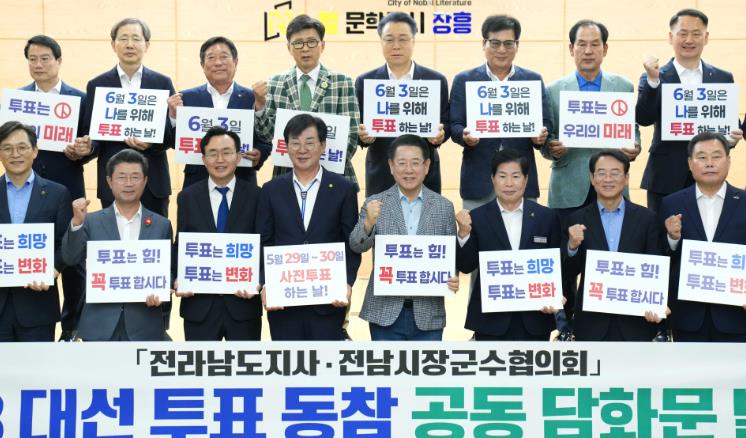 이어 김영록 지사와 전남시장군수협의회는 ‘제21대 대통령 선거 투표 동참 공동 담화문’을 발표하고 도민의 자발적인 투표 참여를 호소했다.