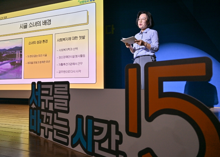 지난 4월에 이어 27일 두 번째로 열린 ‘서바시15’는 서구청 공무원인 신지영 주무관(도서관과)과 조모연 주무관(복지정책과), 그리고 외부인사 심옥숙 인문지행 대표가 강연자로 무대에 올랐다.