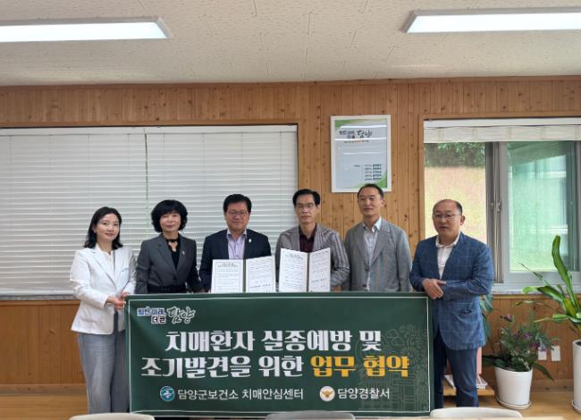 담양군은 5월 27일 보건소 2층 소장실에서 담양경찰서와 함께 ‘치매환자 실종 예방 및 조기 발견을 위한 업무협약’을 체결했다.