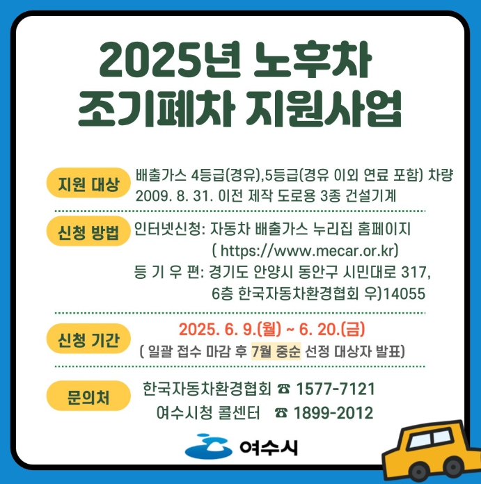 그 밖에 자세한 사항은 여수시 누리집 고시공고를 확인하거나 한국자동차환경협회로 문의하면 된다.