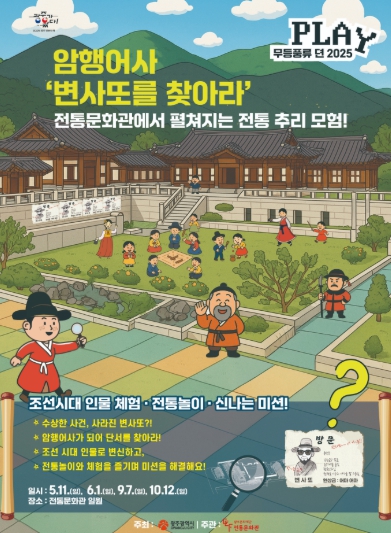 ‘무등풍류 뎐’은 조선시대의 절기와 명절, 그리고 당시의 생활상을 현대적 감각으로 재현한 융복합 전통문화 프로그램이다. 이번 행사는 조선시대 마을을 배경으로 시민이 직접 암행어사가 되어 탐관오리 변사또를 단죄하는 이야기를 중심으로 펼쳐지며, 관람객들은 조선시대 직업과 신분 체험, 전통놀이, 공예 등 다양한 활동에 직접 참여할 수 있다.