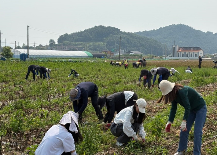 이날 일손 돕기에는 농업기술센터와 화양면, 농협시지부(지역농협) 직원 100여 명이 참여해 마늘 0.7ha를 수확하고 선별작업을 지원했다.