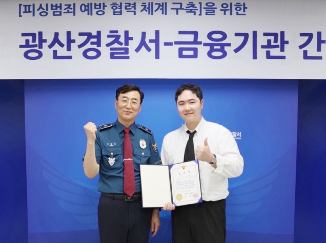 먼저, 광주 송정지점 가계대출 담당 직원은 담보대출을 신청한 고객이 상담 중 휴대전화로 누군가와 지속적으로 연락을 주고받는 모습을 수상히 여겨 대출 자금의 사용 목적을 재차 확인했다. 이에 고객은 ‘리모델링 자금’이라 답했지만, 대출 심사 과정에서 타행 대출이 연달아 실행된 정황이 드러나자 보이스피싱을 의심해 경찰에 신고했다.