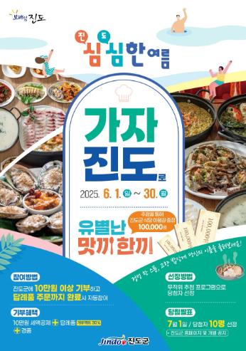 이번 특별행사에서는 고향사랑기부제 기부자 중에서 총 10명을 추첨으로 선정해 진도군 관내 식당에서 사용할 수 있는 10만 원 상당의 이용권을 증정한다.