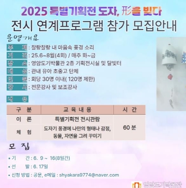 프로그램 참여 단체는 신청서·참가자명단 등을 작성해 영암도기박물관 이메일로 접수하면 된다.