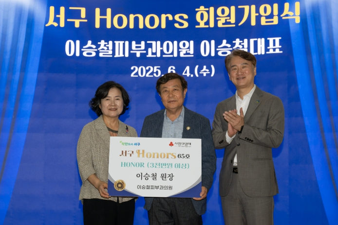 서구는 4일 이승철피부과의원 이승철 원장이 서구아너스의 81번째 회원으로 이름을 올렸다고 밝혔다.