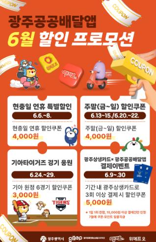 광주시 공공배달앱 6월 특별할인 프로모션은 광주공공배달앱을 이용하는 소비자는 누구나 참여할 수 있다.