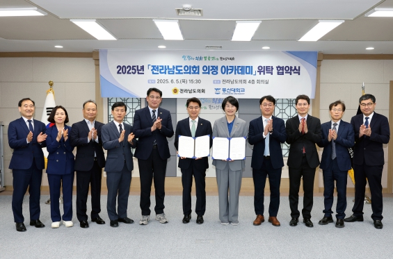 이날 협약은 전라남도의회 김태균 의장, 박문옥 의회운영위원장, 의회사무처장, 총무담당관 등 도의회 관계자와 동신대학교 이주희 총장, 평생교육원장, 교수진이 참석한 가운데 진행됐다.