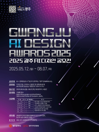 이번 공모전 주제는 ‘AI×문화중심도시, 당신이 생각하는 광주’이다. ▲제품 디자인 ▲디지털미디어·콘텐츠 디자인 ▲시각·정보 디자인 ▲공공시설물 디자인 등 다양한 분야에서 지역 특색을 담은 창의적인 디자인 결과물을 공모한다.