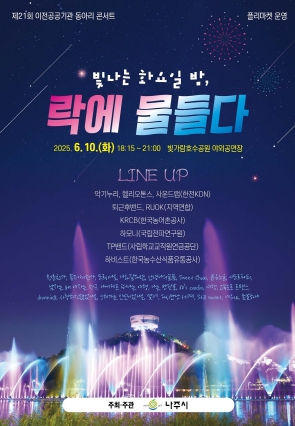 나주시는 오는 10일 오후 6시부터 9시까지 빛가람호수공원 야외공연장에서 ‘제21회 이전 공공기관 정기 동아리 콘서트’를 개최한다고 밝혔다.
