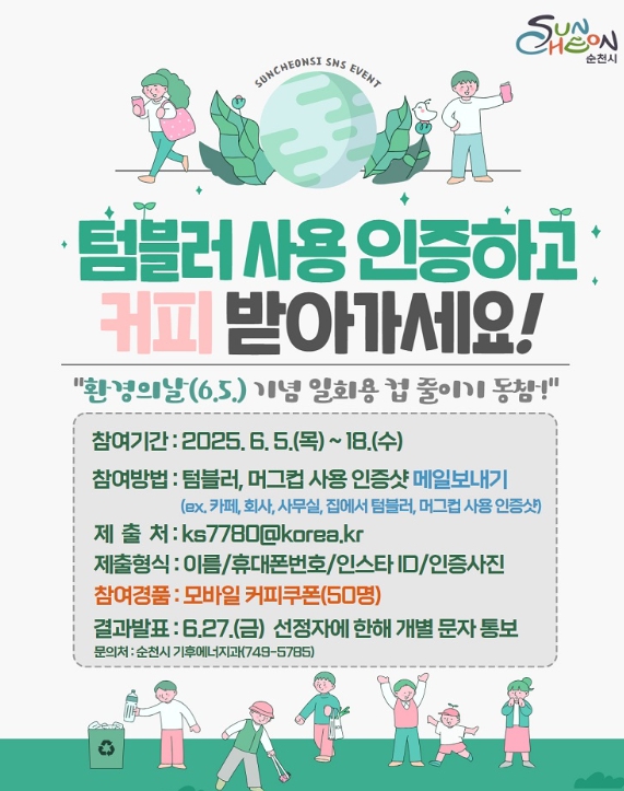 시 관계자는 “일회용 컵 사용을 줄이는 작은 실천이 곧 탄소중립으로 이어지는 중요한 행동”이라며, “이번 SNS 이벤트에 많은 시민들이 참여해 생활 속 기후위기 대응에 함께해 주시길 바란다”고 말했다.
