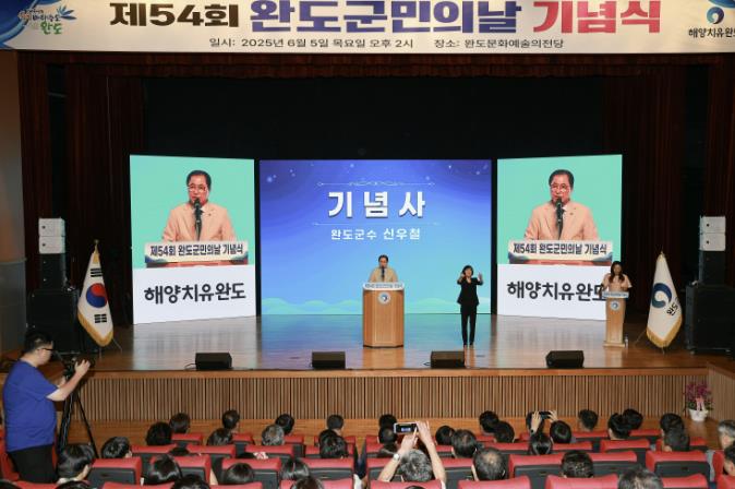 기념식은 축하 공연과 군정 영상 시청, 군민 헌장 낭독, 시상, 기념사 및 축사, ‘완도의 찬가’ 제창, 기념 식수 순으로 진행됐다.