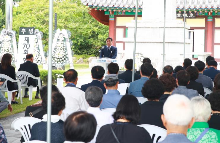 조상래 곡성군수는 추념사에서 “나라를 위해 희생하신 순국선열과 애국지사들의 헌신이 결코 헛되지 않도록 보훈의 의미를 깊이 새기고 국가유공자와 보훈가족에 대한 존경과 예우를 다하겠다.”라고 말했다.